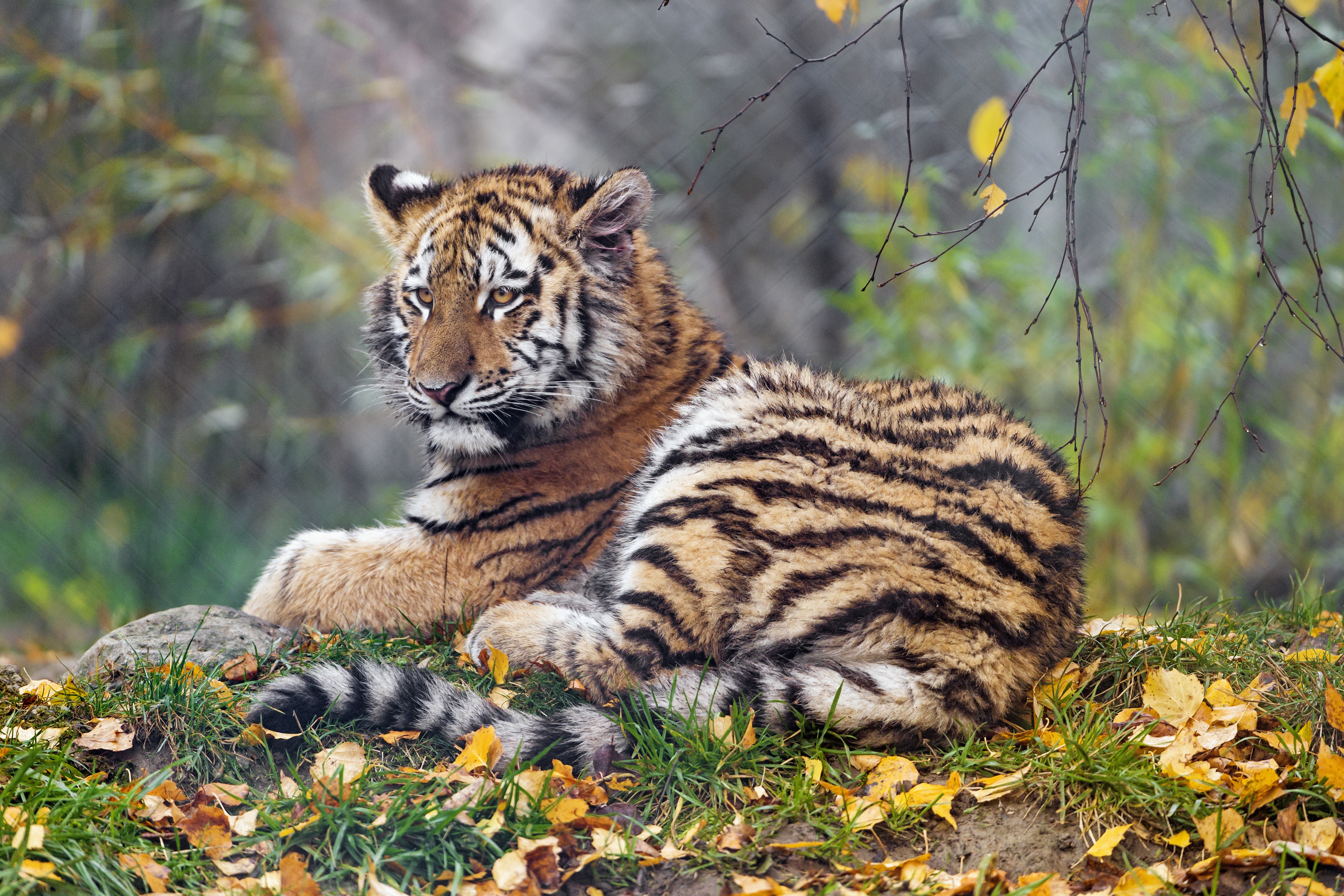 Young tigress Autumn leaves