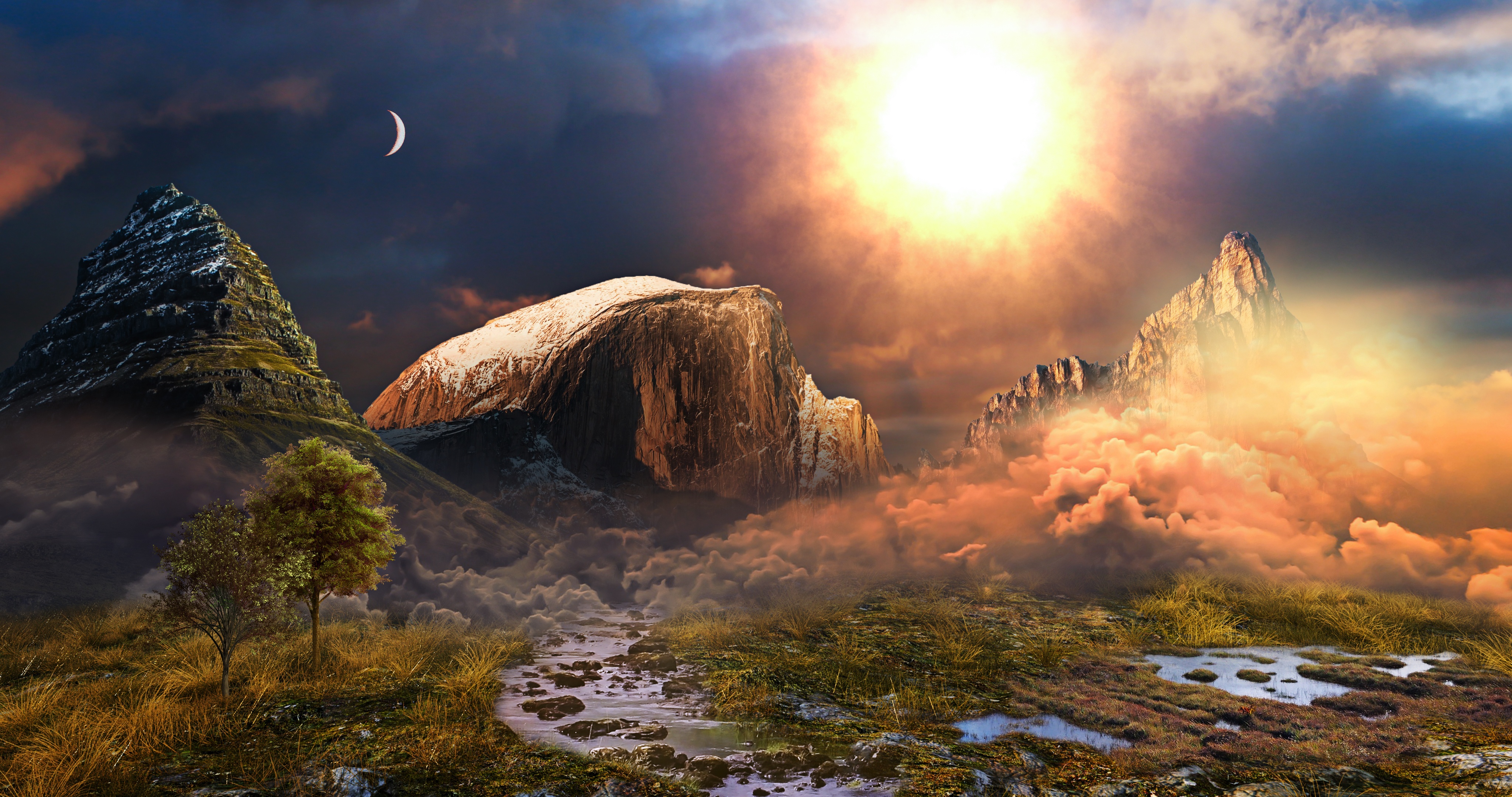 Crescent Moon Landscape