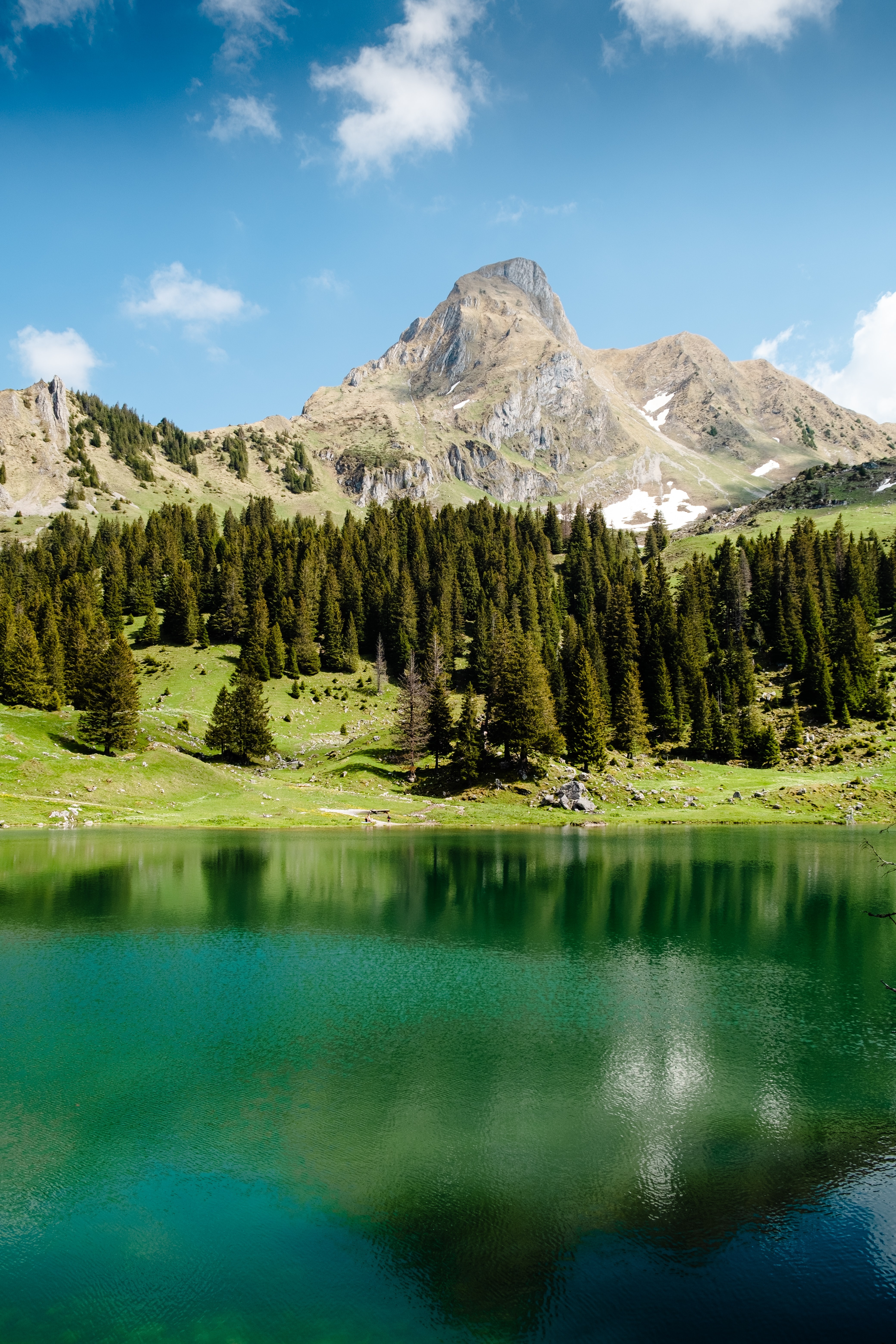 Gantrischseeli lake Pine trees