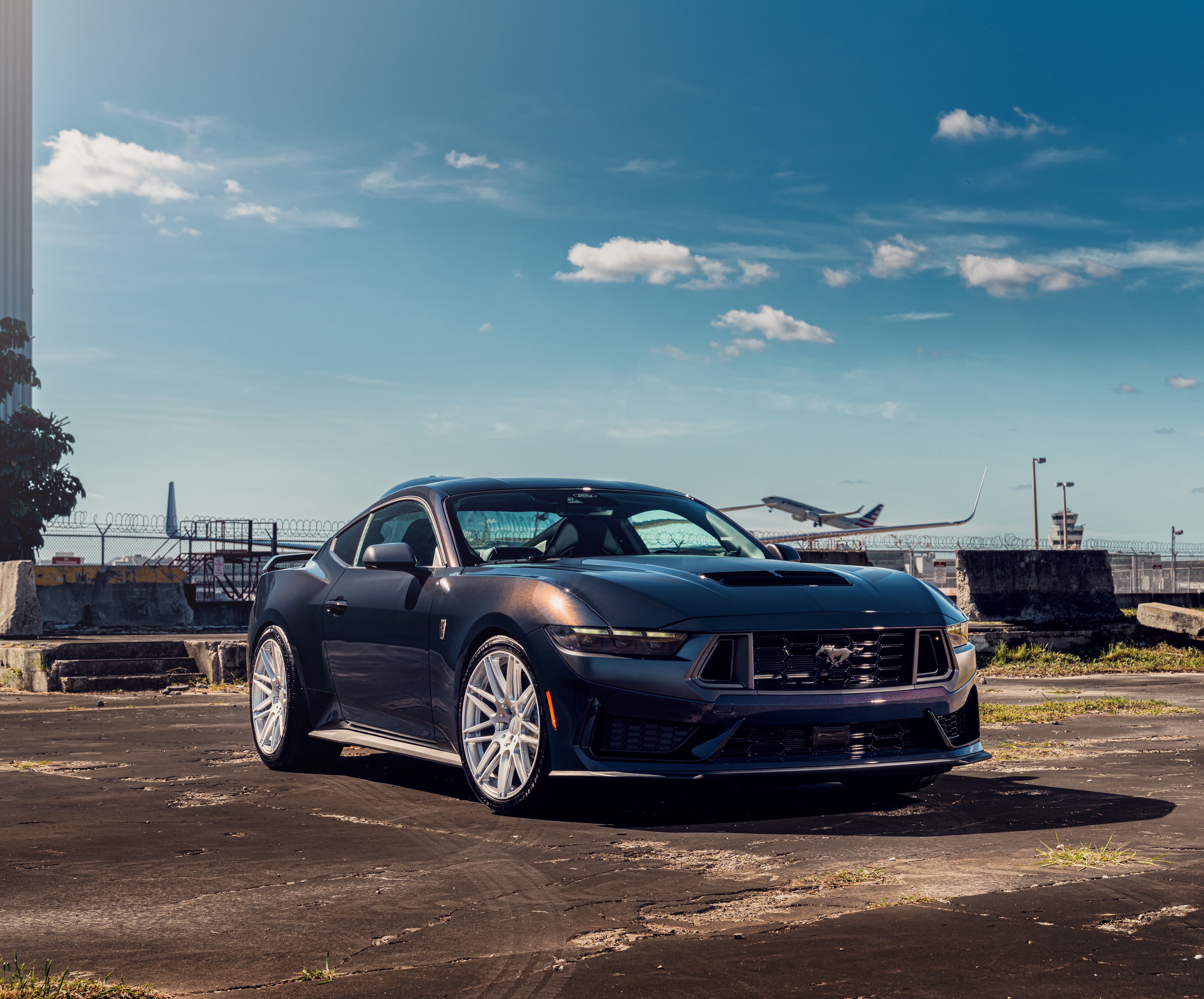 Grey Ford Mustang Dark Horse