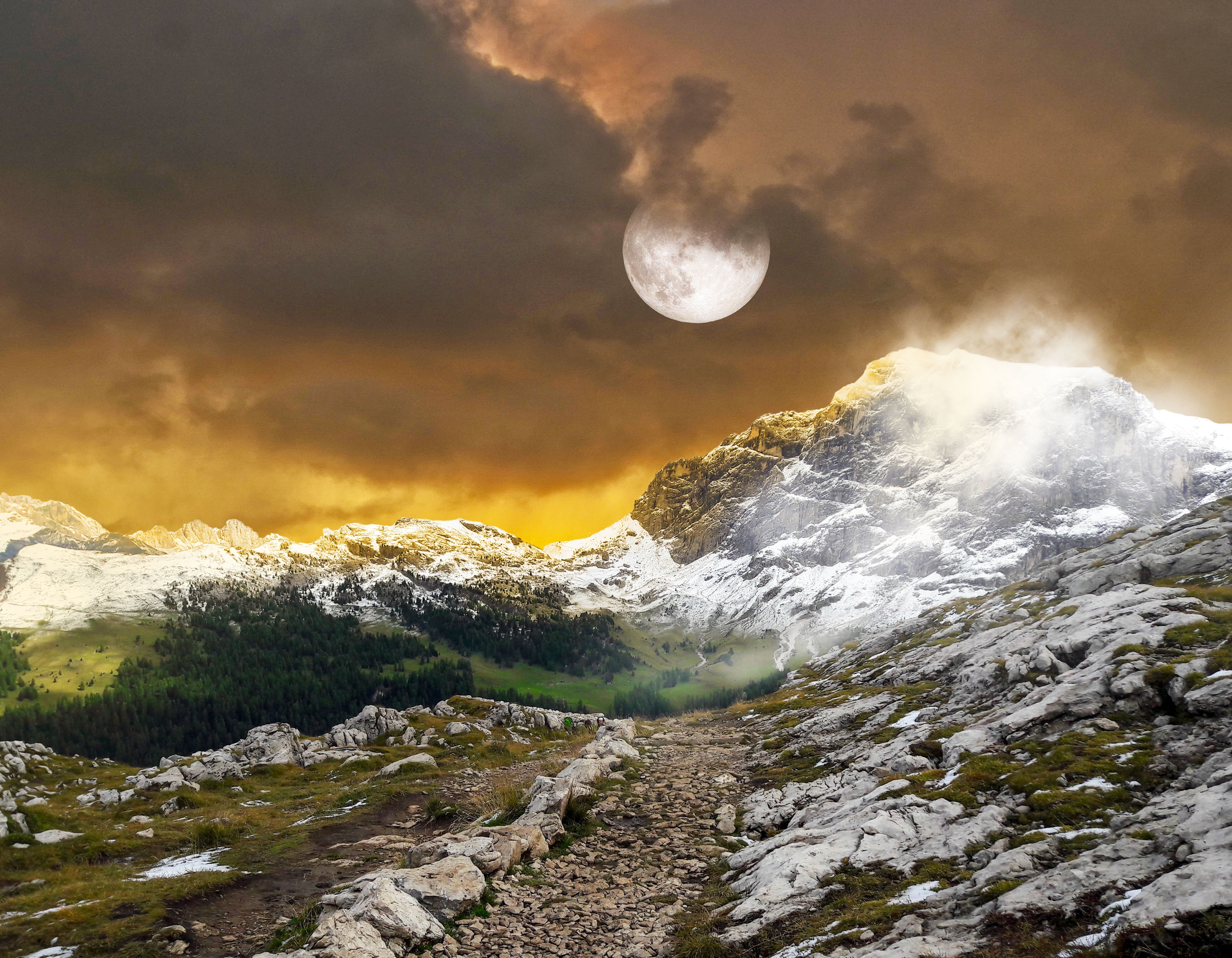 Mountains Landscape Full moon