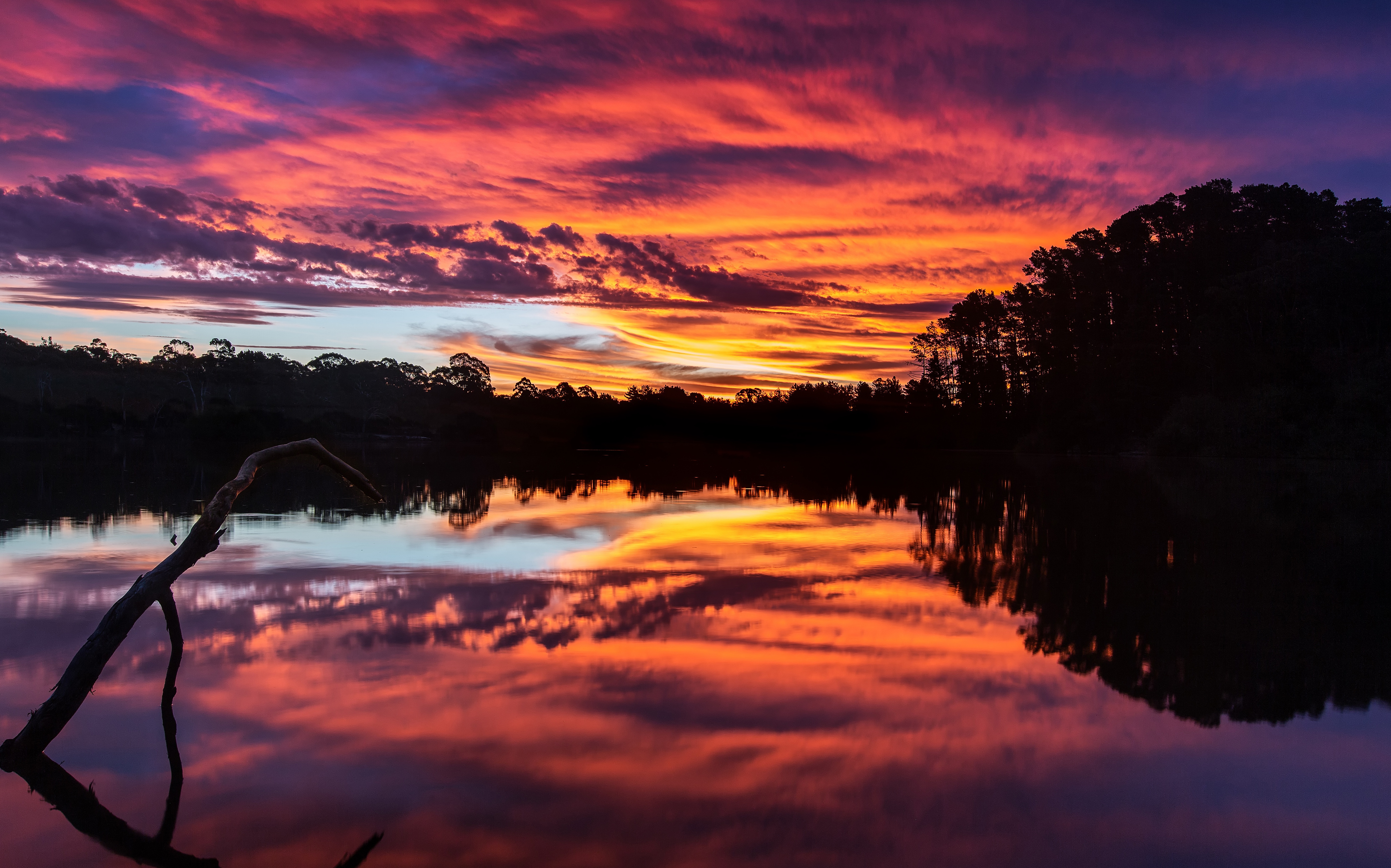 Sunset over a lake with trees