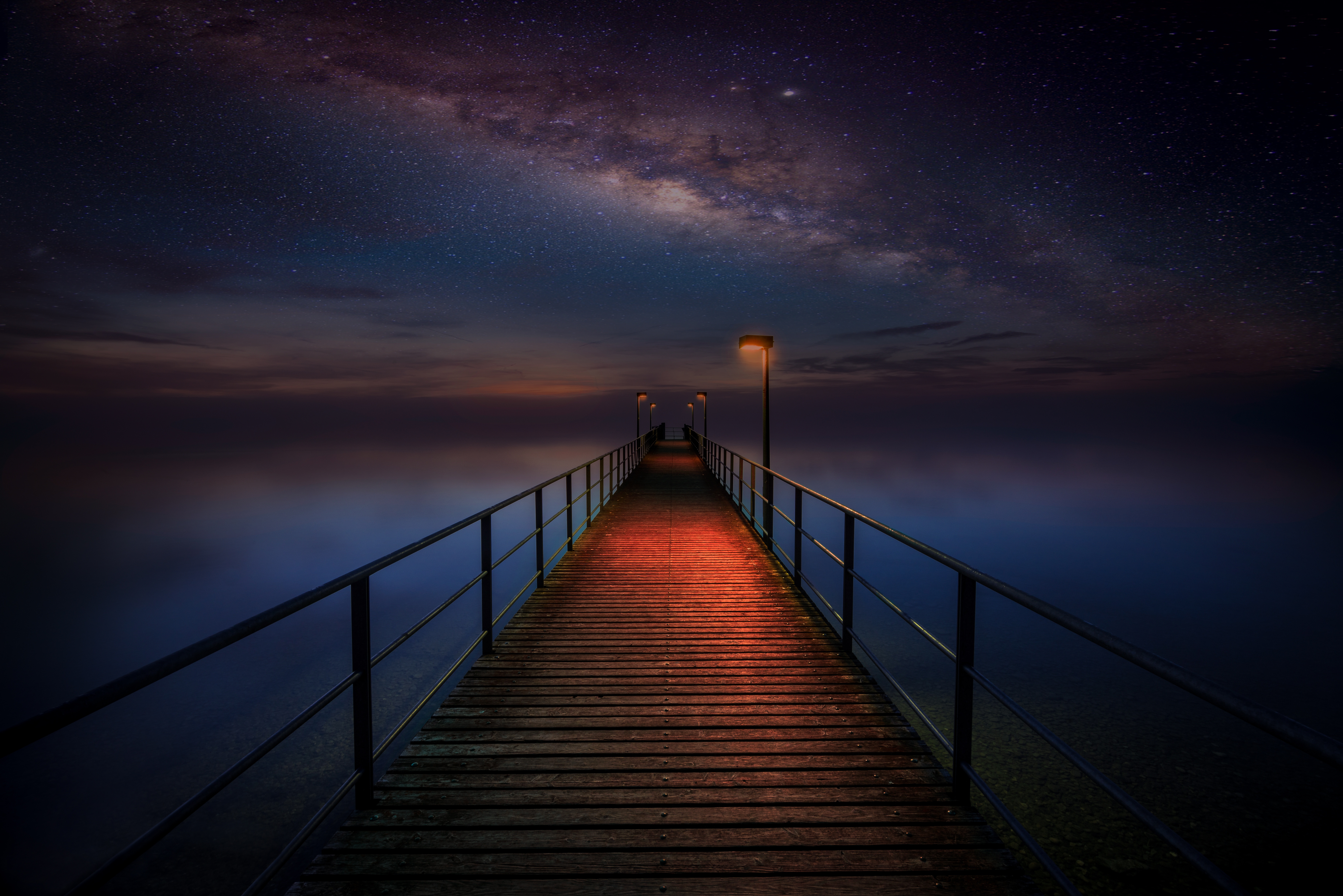 Wooden pier Night sky